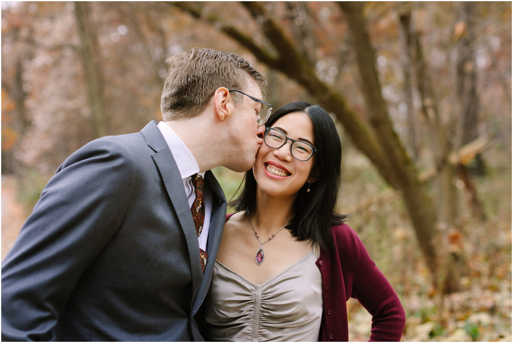 Elaine and Chris!! When we first met these two at a wedding this past August, we immediately hit it off and loved how fun they are and how happy they are together. They have such an infectious joy that makes it so easy to be around them :) Jason had such a great time with them at Fullerburg Woods in Oak Brook a few weeks ago – and I love how they incorporated their fun personalities into the session!! As you’ll see for the second half, there are some Mobile Girl MiM dolls – a facebook messenger sticker pack that the pair discovered a few years ago and adopted as their doppelgängers once they noticed the uncanny resemblance to themselves :) And the laser tag guns – an homage to their 3rd date in Wicker Park which was a wonderful night that started with a picnic and ended with a game of laser tag :) We cannot wait for their wedding next September!! Enjoy the pics!!